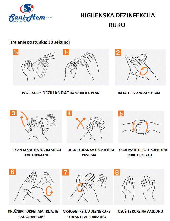 Procedura za dezinfekciju ruku: