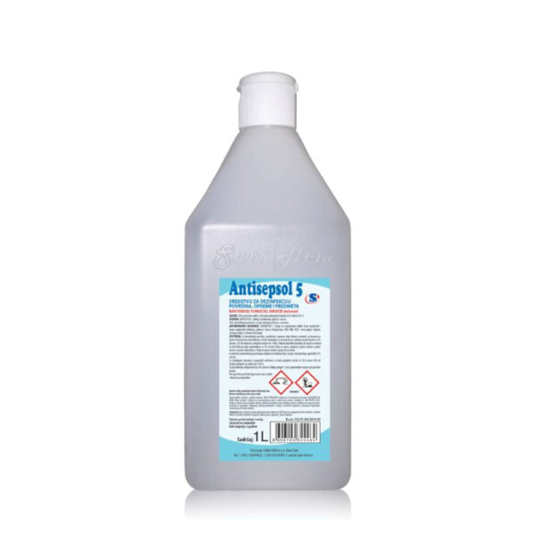 ANTISEPSOL 5 je katjonski dezinficijens, deluje na bakterije, gljivice i alge kao i na određene vrste lipofilnih virusa. Sa predmeta uklanja nečistoće i masnoće, takođe poništava statički električni napon. Ako se upotrebljava u preporučenim koncentracijama nije toksičan i ne deluje na kožu.
