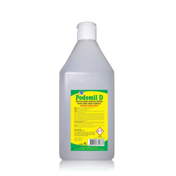 Podomil D je koncetrat. Razređuje se sa vodom 1:20 t.j. u 0,5 litara sredstva dodati vode do 10 litara. Za jako zaprljane površine postupak ponoviti. Preparat je predviđen za univerzalnu upotrebu u bolnicama, školama, domaćinstvu kao i u industriji, odnosno za obradu svih velikih površina: (podovi, zidovi sa keramičkim pločicama, ili nekom vodootpornom prevlakom), ali i kompletnog inventara (hirurške lampe, stolovi, pacijent kreveti, laboratorijski pultovi, sanitarni čvorovi i dr). Površine ne zahtevaju posebnu pripremu i naknadnu obradu, pre i nakon nanonšenja razredjenog preparata Podomila D. Sredstvo objedinjuje kvalitetno mehaničko čišćenje površina i visokopotentnu, završnu dezinfekciju. Preporuka je da se standardno postupak obrade površina obavlja jednom dnevno, odnosno dva puta dnevno, na površinama koje su podložne učestalom prljanju.