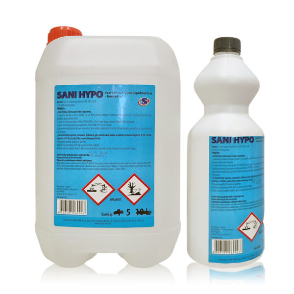 SANI HYPO – tečno sredstvo sa aktivnim hlorom je izuzetno širokog antimikrobnog spektra delovanja. Lako se meša sa vodom. Još nije naučno dokazano kompletno dejstvo hlora ali se pretpostavlja da on prolazi kroz opnu ( ćelijsku membranu) i razara enzimski sistem ćelije.