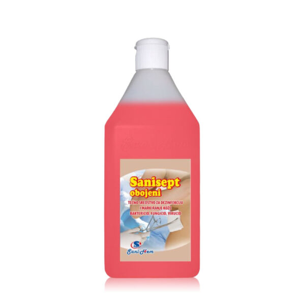 Odlikuje ga trenutno antimikrobno dejstvo. Mešavina visoko prečišćenih alkohola daju veliku potentnost ovom proizvodu. Kvalitetno markiranje polja obojenim SANISEPTOM, ne dovodi do resorpcije aktivnih i bojenih supstanci i alergijskih reakcija. Upotrebljava se za markiranje (označavanje) i dezinfekciju zdrave kože (uključujući kožu bogatu lojnim žlezdama) pre: operativnih zahvata i ostalih procedura kod kojih je neopho dno dezinfi kovati i markirati polje kože. Bez aldehida i fenola. Мože se upotrebljavati i pre venepunkcija i injekcionih uboda . Bez aldehida i fenola. Nerazređen, u roku od 15 sekundi na sobnoj temperature bez prisustva proteinskog opterećenja, uništava sledeće oblike Gram pozitivnih i Gram negativnih bakterije: Staphylococcus aureus, Escherichia coli, Candida albicans. viruse: herpes virus, hepatitis B i C, HIV, virus infl uence A i B , adeno virus, entero viruse, SARS, vaccinia i rotaviruse. Ispitan na Bacillus cereus u vremenu od 30 sekundi. Vremenu delovanja 2 minuta na kožu bogatom lojnim žlezdama.