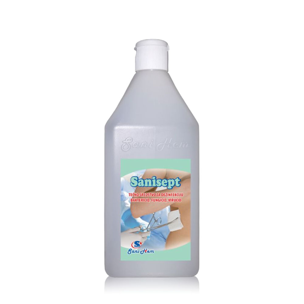Upotrebljava se za dezinfekciju zdrave kože (uključujući kožu bogatu lojnim žlezdama) pre: operativnih zahvata, punkcija, uzimanje krvi za analizu i ostalih procedura kod kojih je neophodno dezinfi kovati kožu. Bez aldehida i fenola. Ne dovodi do alergijskih reakcija. Sanisept, nerazređen, u roku od 15 sekundi na sobnoj temperature bez prisustva proteinskog opterećenja uništava sledeće oblike Gram pozitivnih i Gram negativnih bakterija, funge i viruse: Staphylococcus aureus,Escherichia coli, Candida albicans. Вирусе: herpes virus, hepatitis B i C, HIV, virus infl uence A i B , adeno virus, entero viruse, SARS, vaccinia i rotaviruse. Delovanje na Bacillus cereus ispitano je u vremenu od 30 sekundi.